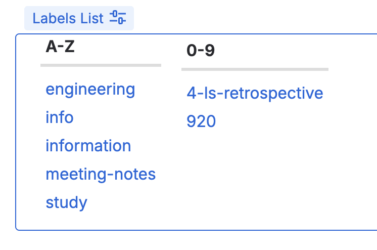 Labels are “meta data”, or data about data, that can be added to pages, live docs and blogs. Labels tell us something about what is in the content, or something else about it. For example, you could have a label called “meeting notes” on every page that relates to meeting notes, or a label called “engineering” on a page related to the engineering team.
