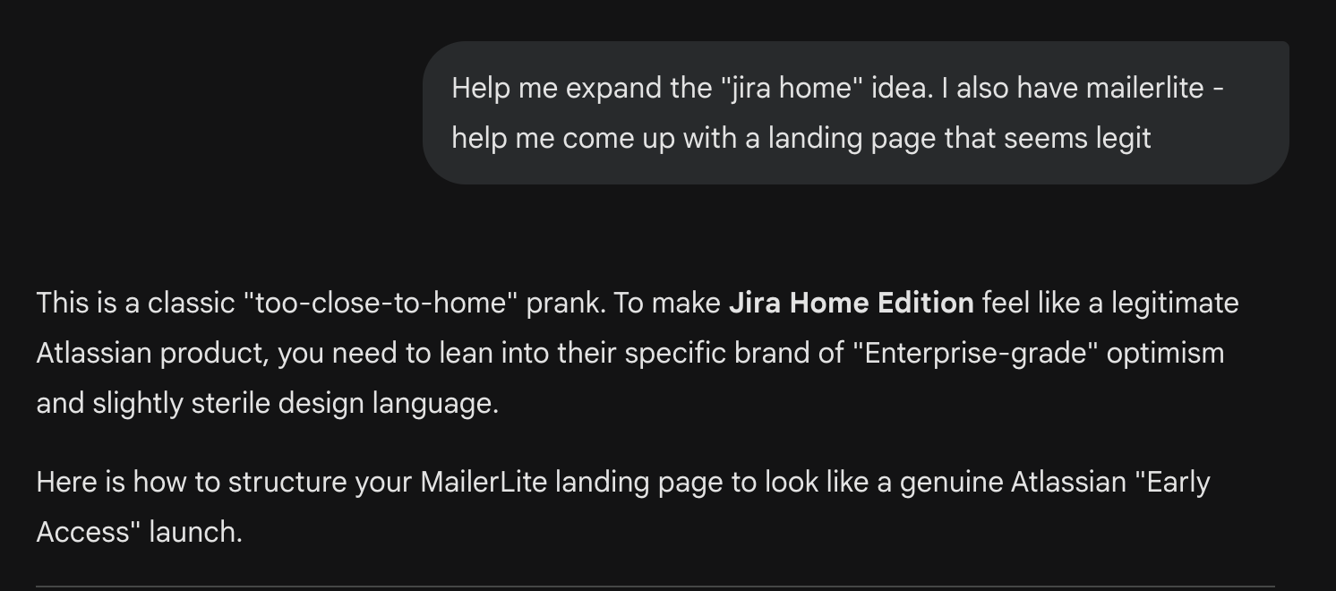 So, instead of just doing a LinkedIn post on Jira Household, I decided to go a bit deeper and build a product landing page. The challenge was I didn't know much about the feature other than "it exists". Luckily between "beating my head into the keyboard" and my friend Gemini, I got some good ideas on how to set things up.
