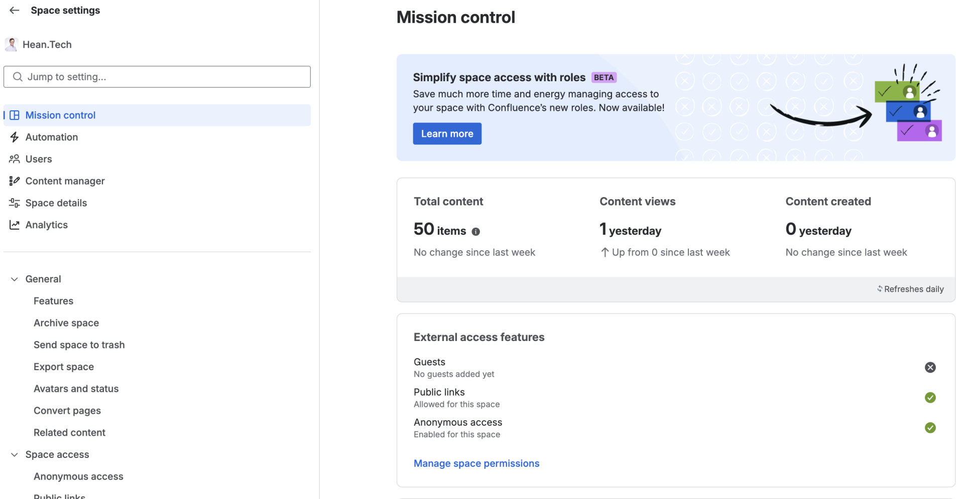- Adjust space permissions